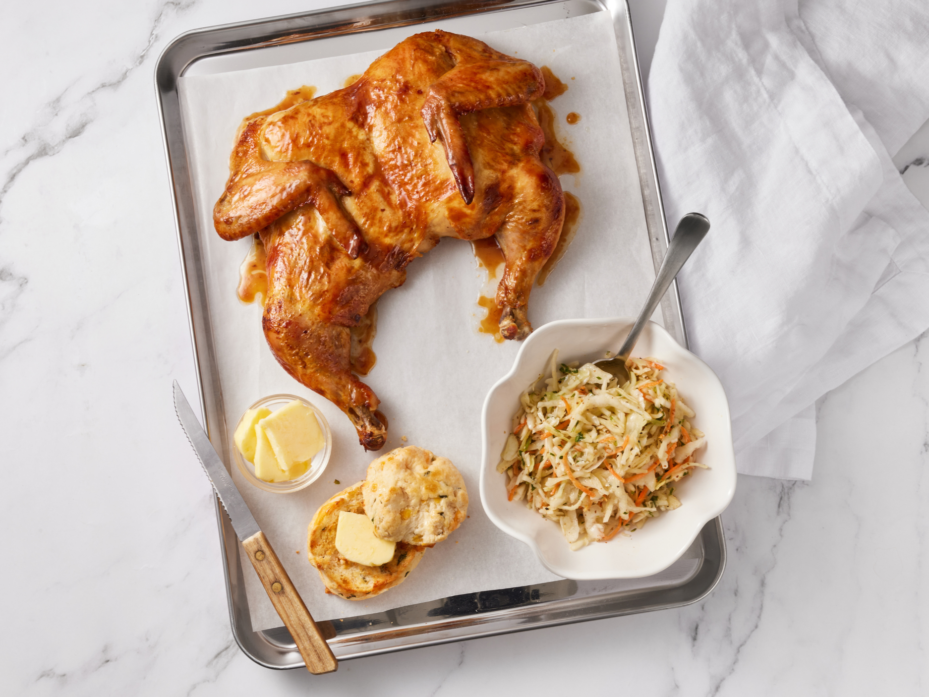 While you can serve this delicious roast chicken anytime, anywhere, you’ll love serving it with Summerhill’s Air Fryer Fries, prepared Coleslaw, Cheddar & Chive Biscuits, and pats of Summerhill’s new Sea Salted Butter.